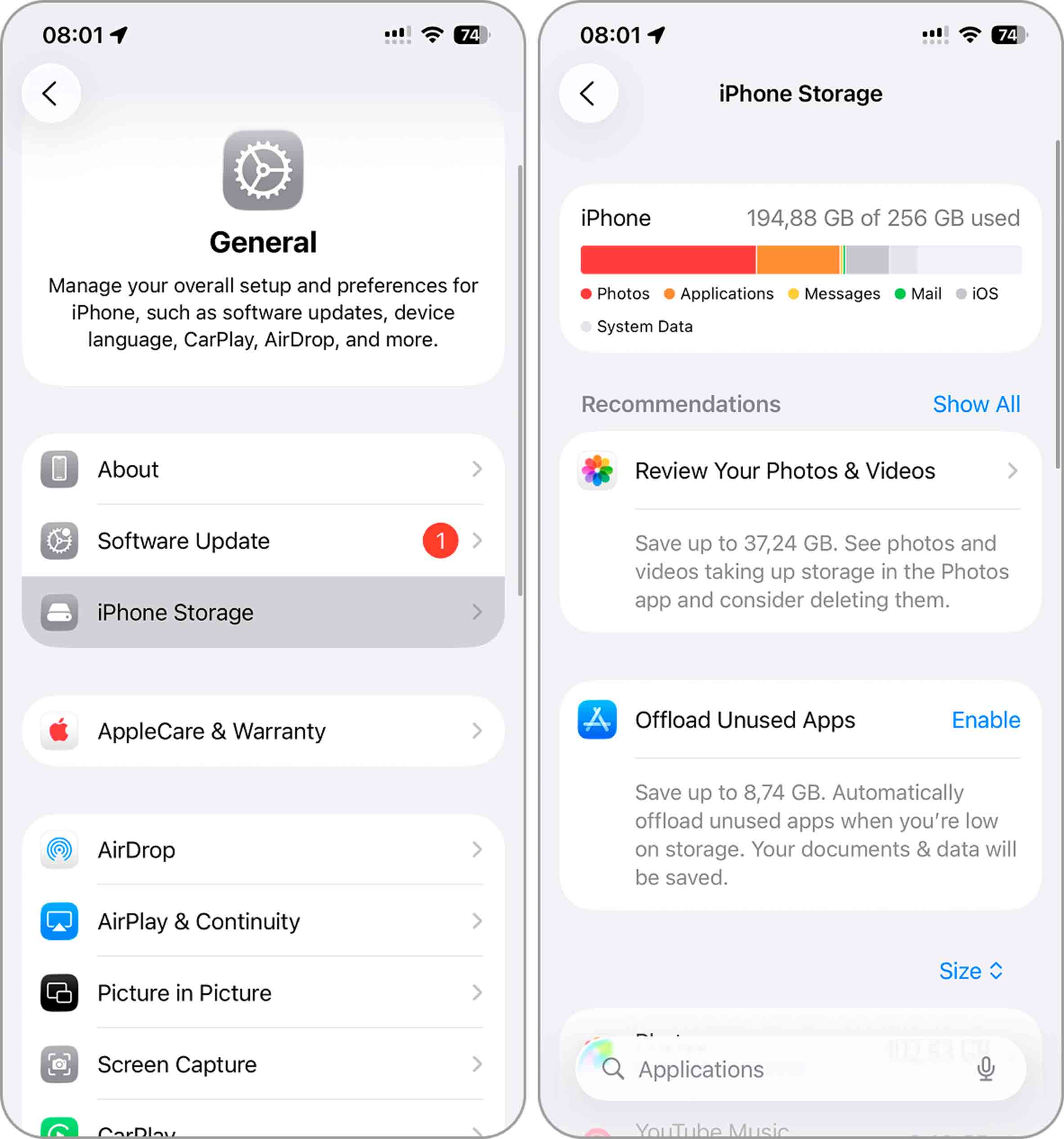 - Open Settings > General > iPhone Storage.