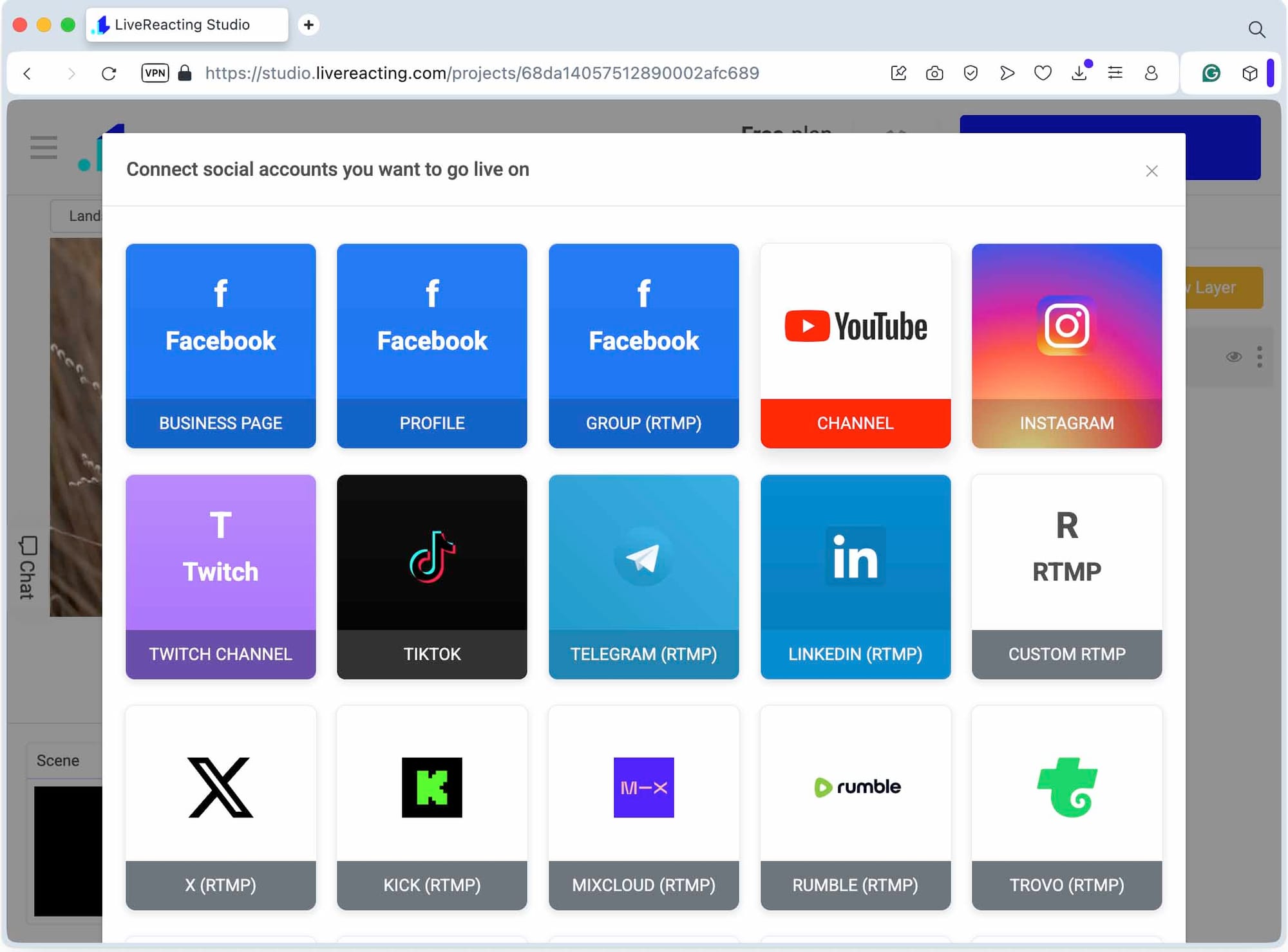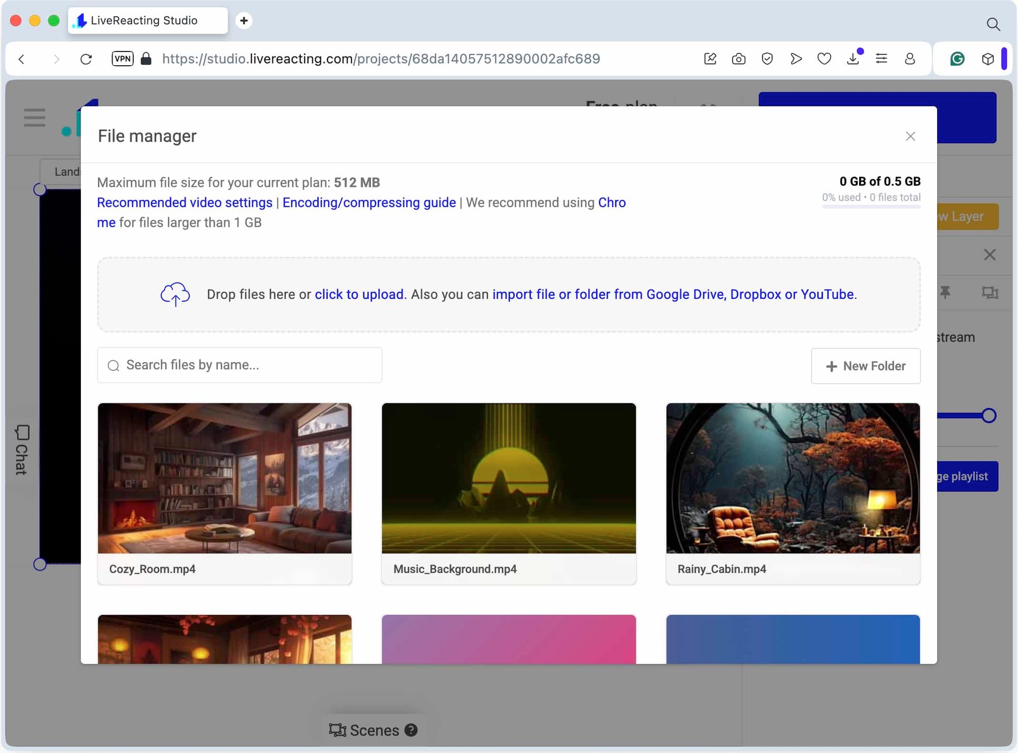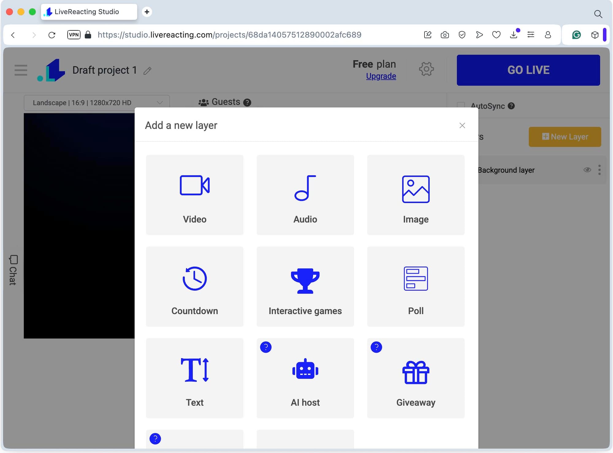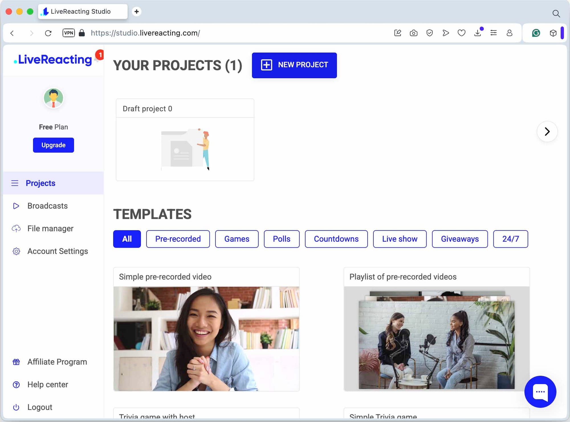 - Log in to your LiveReacting account and create a New Project.