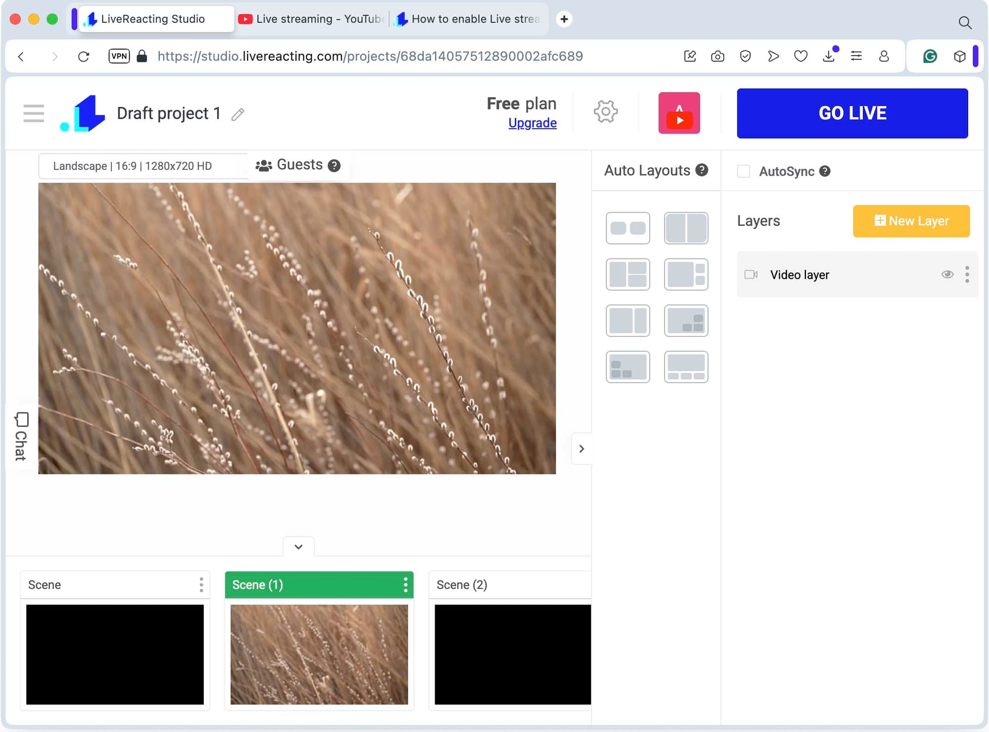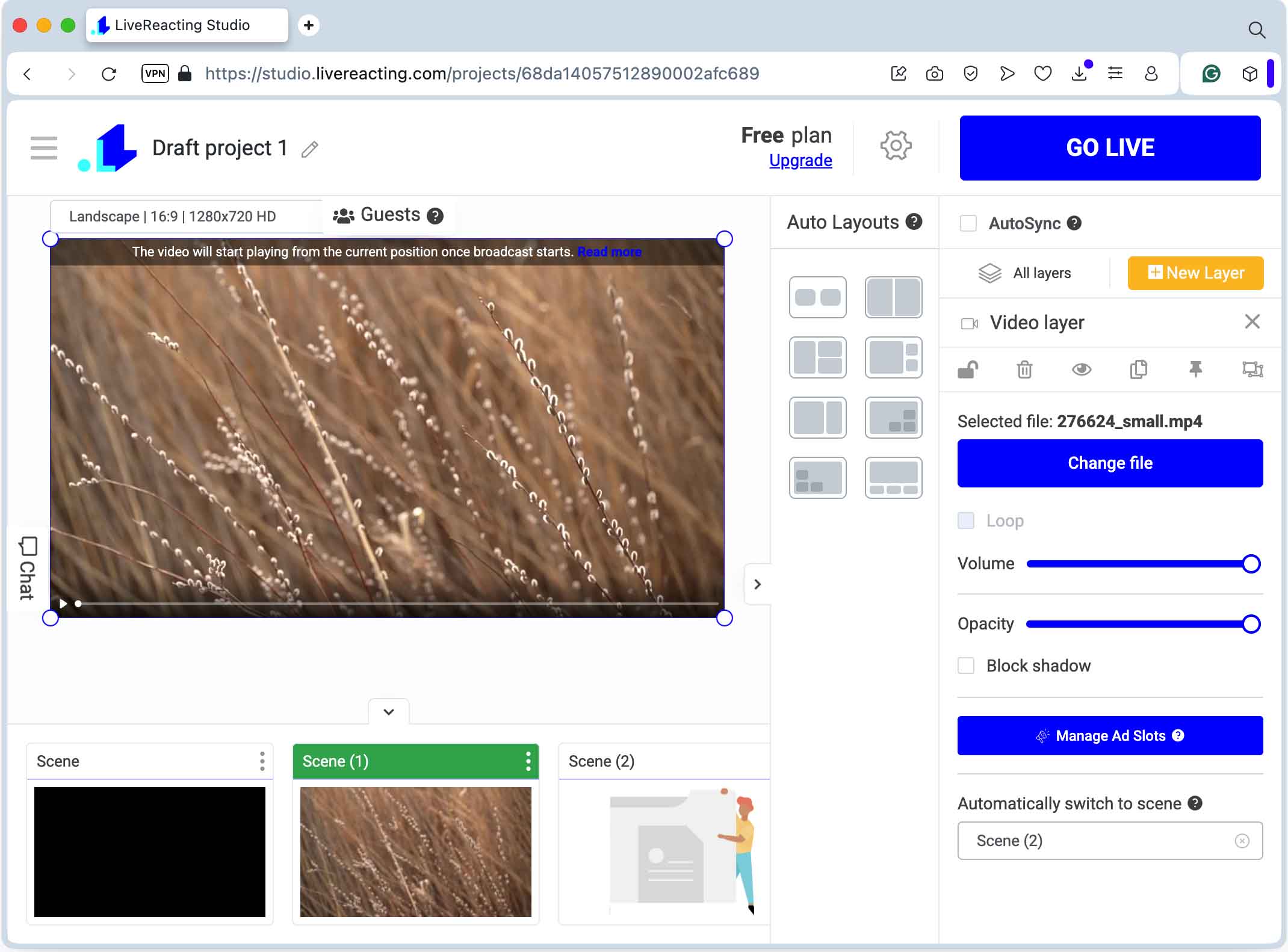 - Once everything is ready, save your project and hit Go Live. Within minutes, your stream will appear on the platform you connected to.