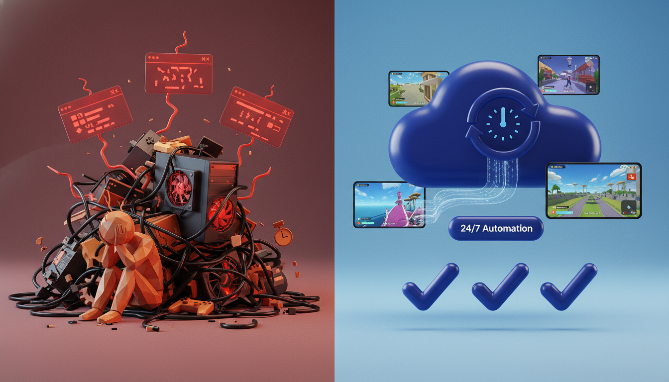 Traditional broadcasting with OBS puts an enormous technical burden on developers—keeping computers running 24/7, monitoring streams constantly, and dealing with stability issues. It's simply not practical for most indie teams.